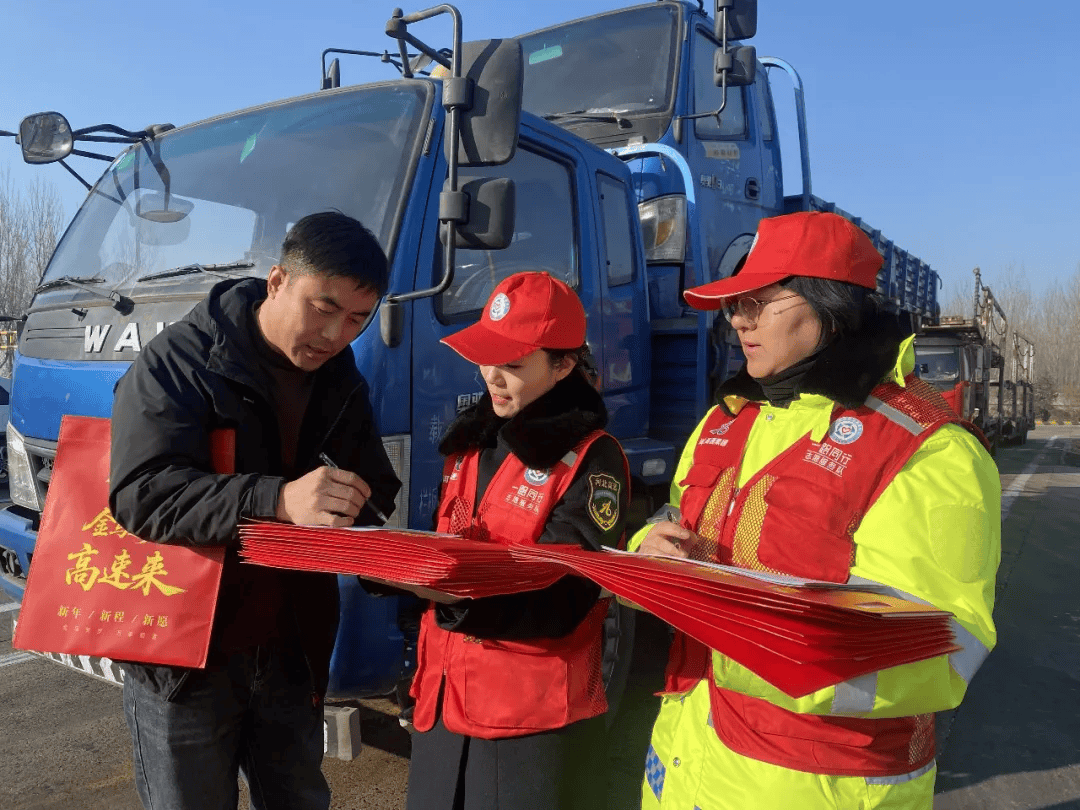 暖心服务,情满归途。各收费站开展“福暖归途 情满高速”活动,深入周边企业、物流园区为司机送福,同时设立便民服务台,累计提供热水、应急物品、路况咨询等服务700余次。
