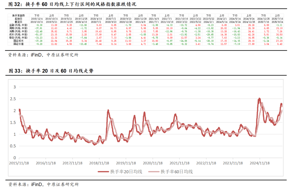 在9月初,Spearman指标出现拐点并开始上行,该指标变化预示市场风格可能发生转变。本次研究中,引入了换手率指标作为辅助分析工具,该指标在9月中旬却开始下行。根据以往的分析经验,理论上可能预示着10月份科技风格和价值风格之间切换的概率加大。