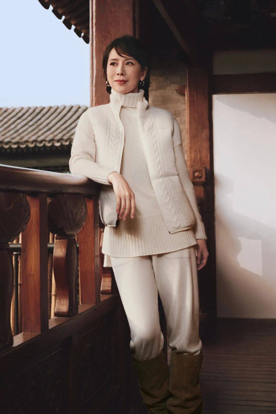 范主超爱海清在2025秋冬系列中演绎的这款白色双面穿马甲,A面是经过反复打磨的哑光高支羊绒,纹理精致奢华;B面则提供机能属性,适合户外活动。