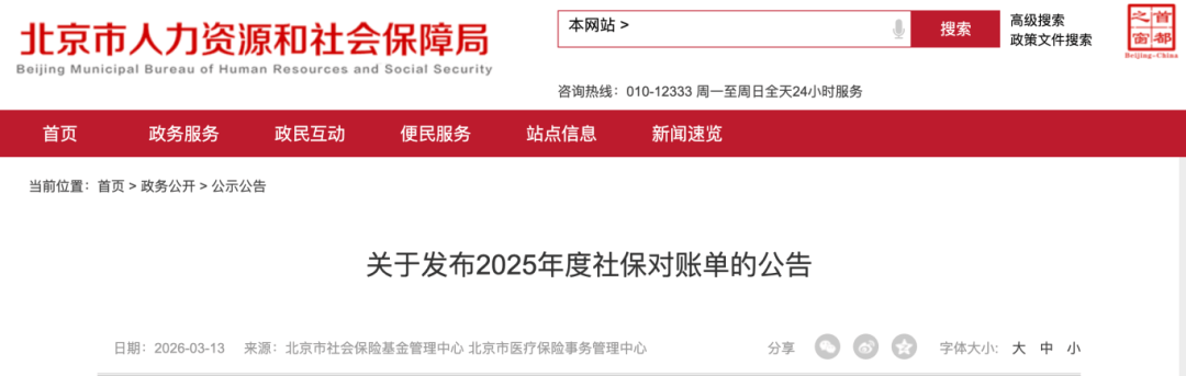 2026-03-20南宫28官网,南宫28官方网站,南宫28APP下载3月13日,北京市社会保险基金管理中心、北京市医疗保险事务管理中心联合发布《关于发布2025年度社保对账单的公告》。