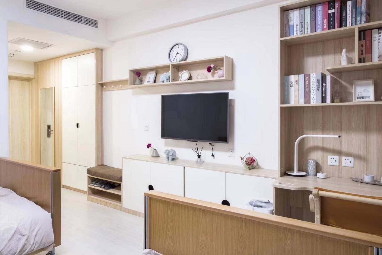 房间配套直接拉满:60寸LED电视、冰箱、一键呼头、防护型卫生间,集中供暖+冷暖空调+新风系统,冬暖夏凉还透气,细节拉满❤️