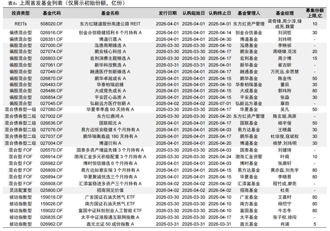 上周新成立基金18只,合计发行规模为51.24亿元,较前一周有所减少。此外,上周有37只基金首次进入发行阶段,本周将有36只基金开始发行。
