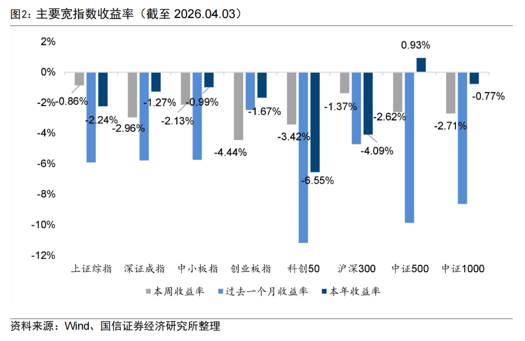 2026-04-09南宫28官网,南宫28官方网站,南宫28APP下载上周A股市场主要宽基指数走势全线、中小板指收益靠前,收益分别为-0.86%、-1.37%、-2.13%,创业板指、科创50、深证成指收益靠后,收益分别为-4.44%、-3.42%、-2.96%。