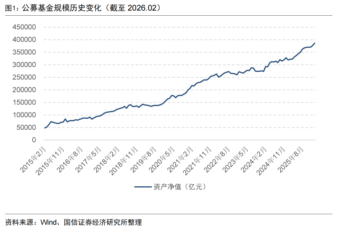 中国基金业协会最新披露的数据显示,截至2026年2月底,公募基金整体规模已达38.61万亿元,环比微增2.36%。在市场回暖的推动下,公募基金管理规模持续攀升,连续11个月刷新历史纪录。