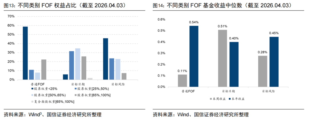 截至上周末,开放式公募基金有普通FOF基金319只、目标日期基金107只、目标风险基金150只。今年以来,普通FOF基金中位数业绩表现最优,累计收益率为0.54%。